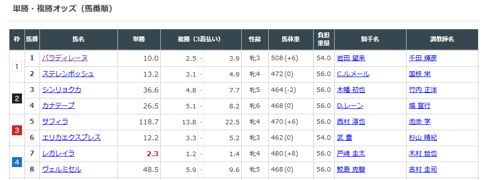 もしこれが、レース前のオッズなら、 「〇〇時△△分時点オッズ」 みたいな表記となります。