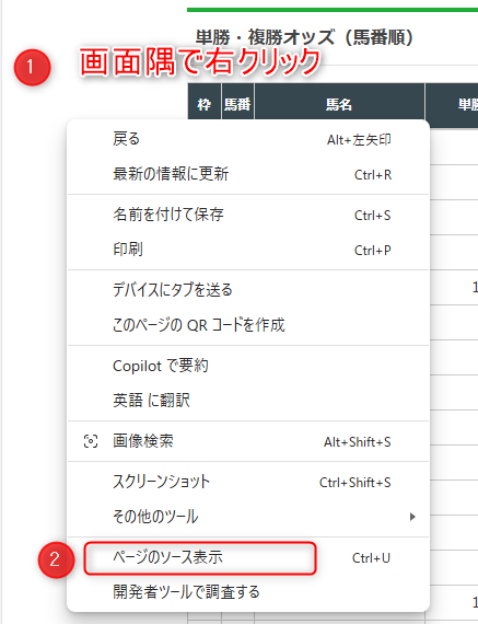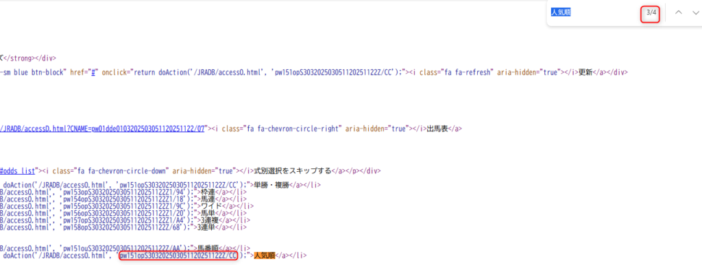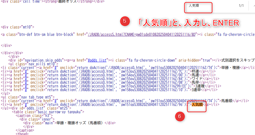 これから、そのページの設計図の中から 「オッズが書かれている場所」 を確認していきます。