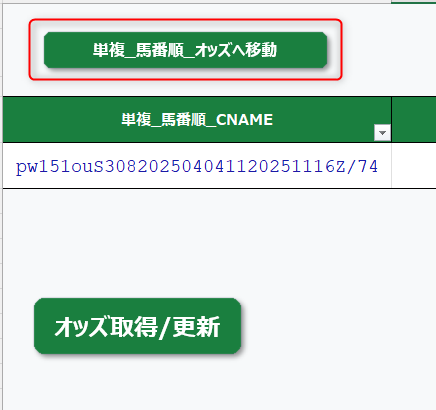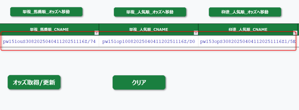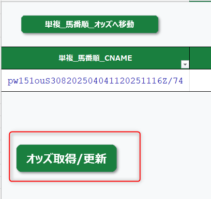 なので、CNAMEを一度セットすれば、オッズ取得ボタンを押すたびに最新のオッズに