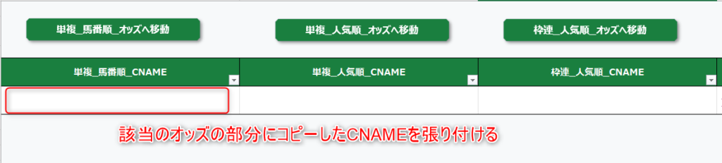 そして該当のオッズのセル上で、右クリック → 貼り付け か、