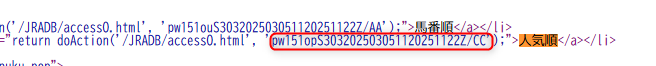 pw151~74 という文字列が、単複_馬番順のCNAMEとなります。